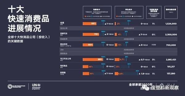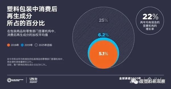 《全球承諾2020進展報告》顯(xiǎn)示,簽署(shǔ)方在兩大領域(yù)實現了顯著的進展:塑料包裝使用再生成分;逐漸淘汰常見的問題材料和包裝,例如PS和PVC包裝、無法探測到的炭黑(hēi)顏料(liào)和(hé)一次(cì)性塑料袋和吸管。