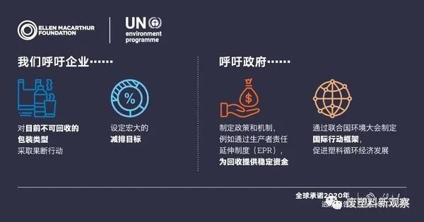 基於上述發現,艾倫·麥克阿瑟基金會和聯合國環境署發出破除塑料汙染的四大呼籲: